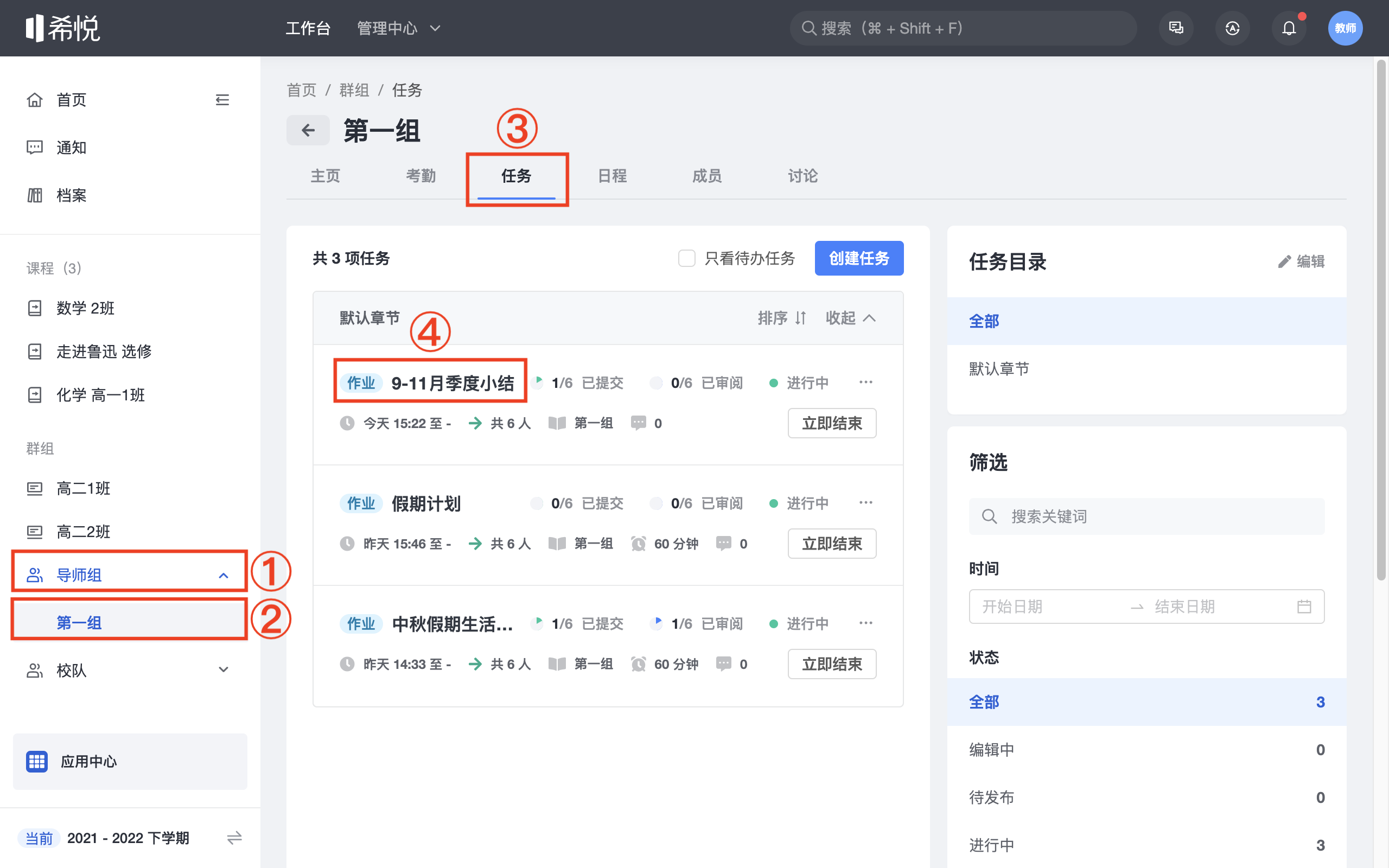 【导师】批阅导生提交的任务 登录系统后,点击「导师组」-导师组名称-「任务」,点击需要批阅的任务。 1. 通过任务 选择需要批阅的学生任务,输入评语并点击「批阅」。 2. 驳回任务 选择需要批阅的学生任务,点击「驳回」。 输入驳回理由,点击「确定」。 更新于 2022年11月30日 以上内容是否对您有帮助? 相关文章 【认证-教师&学生】发放小红花实体卡片-操作视频 【宿舍-教师】导出学生考勤统计 【宿舍-教师】查看学生考勤统计 【宿舍-教师】查看宿舍考勤统计 【宿舍-教师】录入宿舍考勤 【宿舍-教师】宿生评价录入