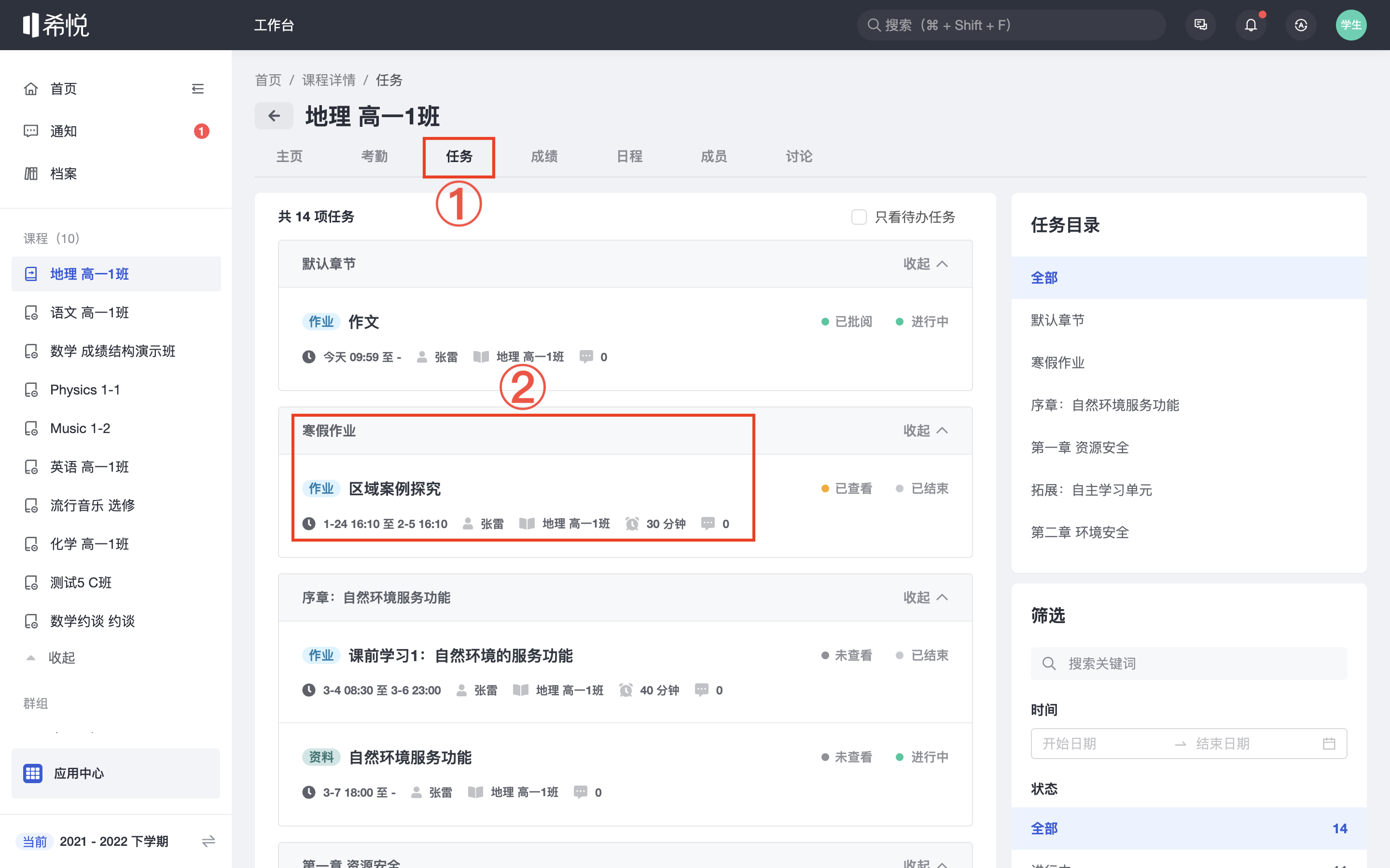 进入页面后,点击「任务」,点击选择需要提交的任务内容。