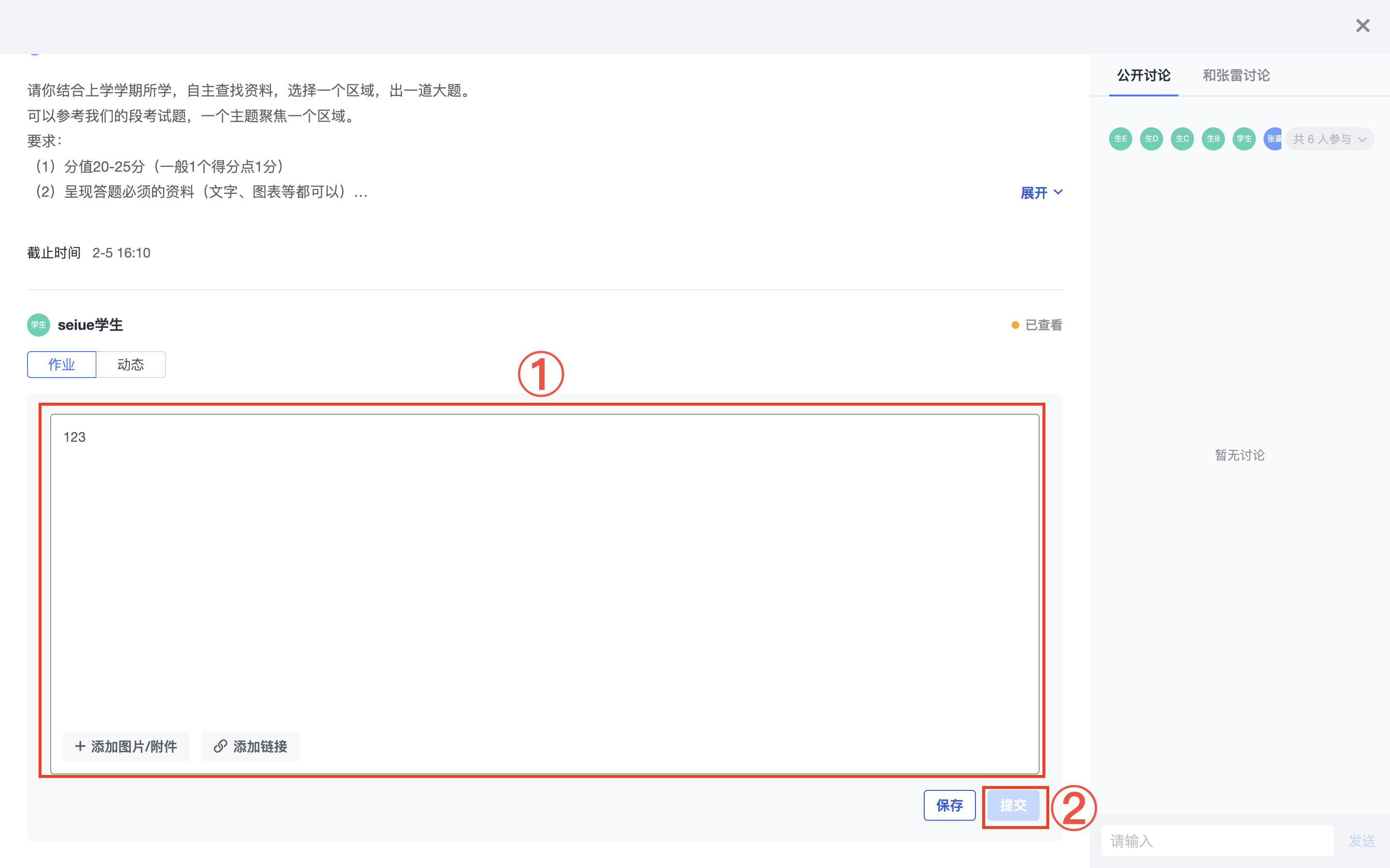 弹出页面后,根据作业要求,在方框内填写作业完成情况,完成后点击「提交」。